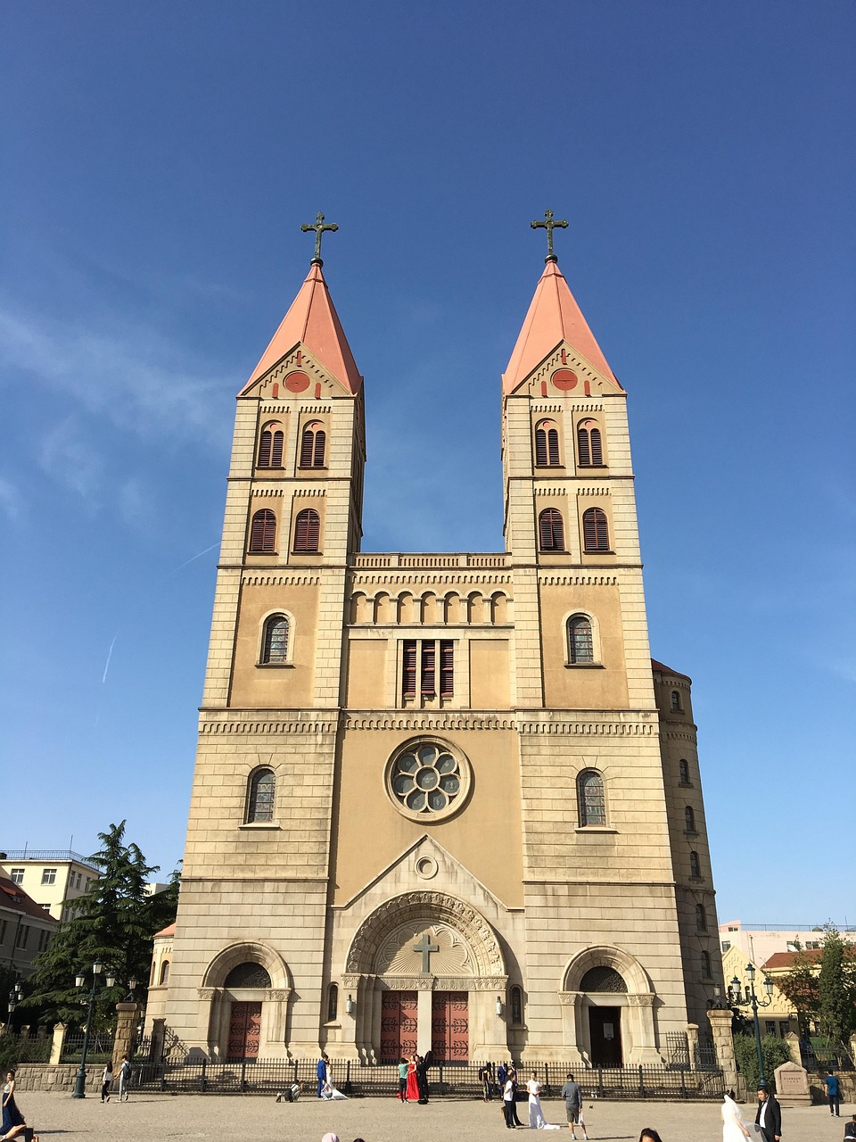 칭다오 천주교 성당은 독일 식민지 시절 지어진 고딕양식의 건물로, 웨딩 촬영 명소로도 유명합니다.