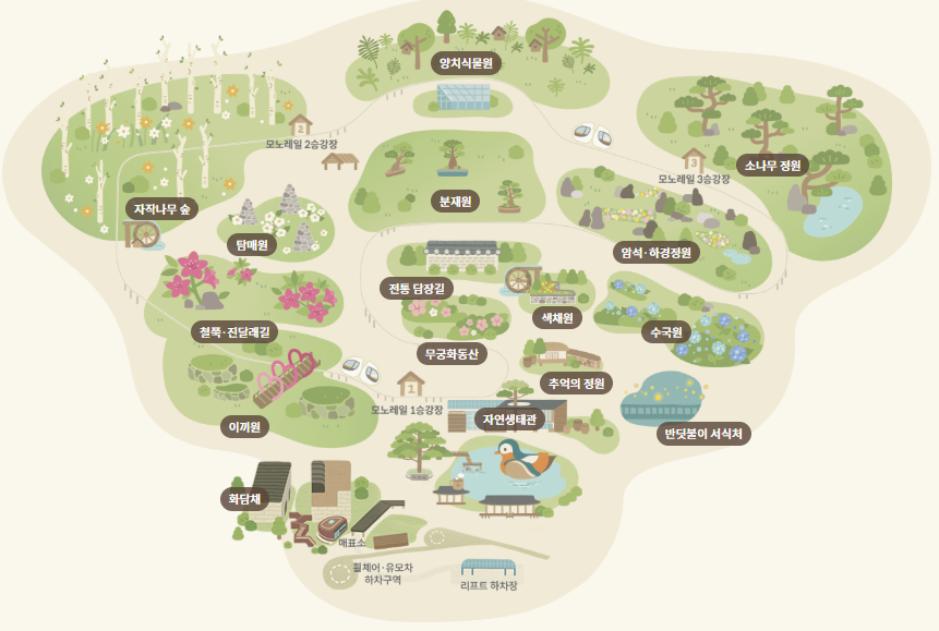 야외 산책로와 실내관, 모노레일, 편의시설까지 깔끔하게 갖춰져, 가족·연인·나들이족 모두에게 추천!
