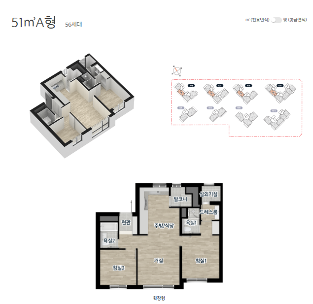 - 타입 : 전용 51㎡, 59㎡ (44㎡, 65㎡, 74㎡, 84㎡는 조합원 물량)